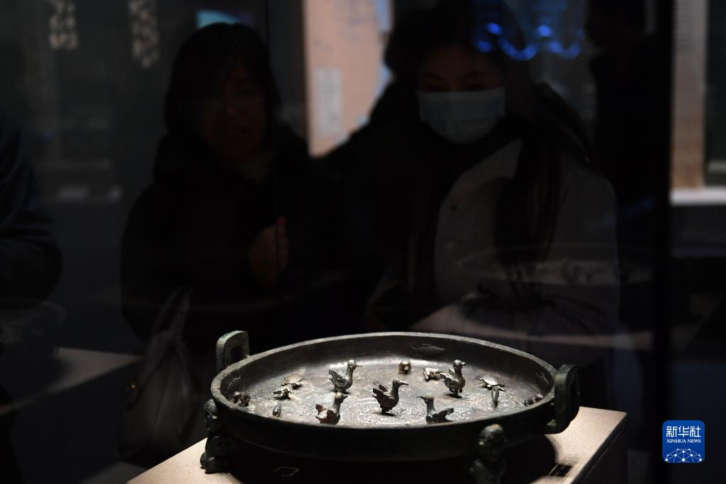 12月1日,观众在长沙博物馆“晋国霸业——山西出土两周文物精华展”参观展品晋公盘。