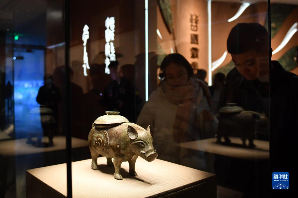 12月1日,观众在长沙博物馆“晋国霸业——山西出土两周文物精华展”参观展品猪尊。