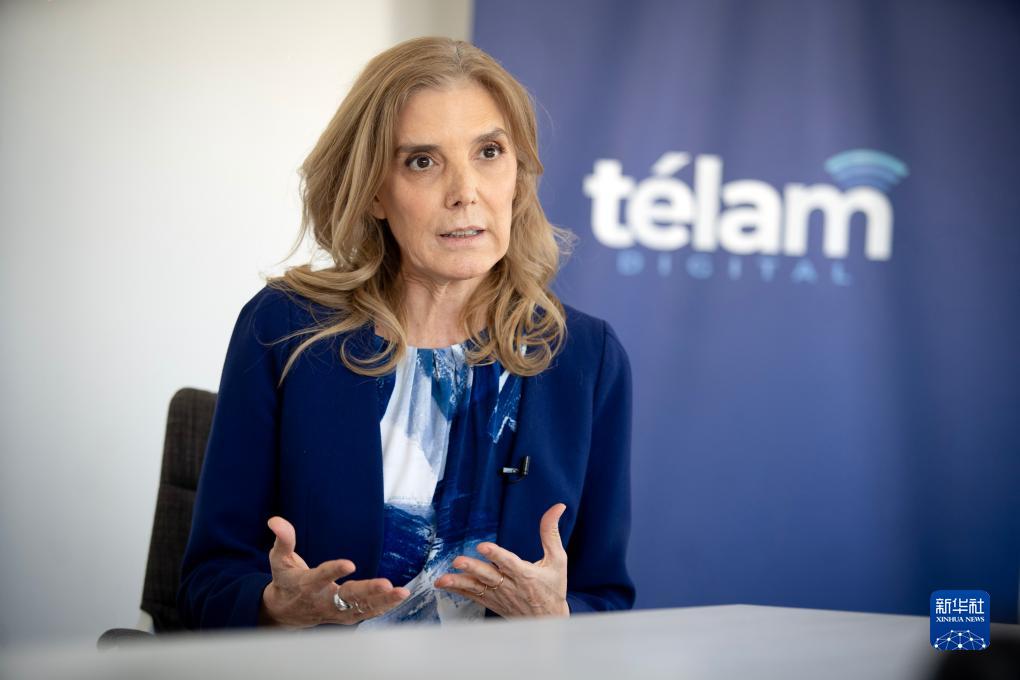 11月7日,阿根廷美洲通讯社社长贝尔娜达·略伦特在位于阿根廷布宜诺斯艾利斯的美洲通讯社总社接受新华社记者专访。新华社发(马丁·萨巴拉摄)