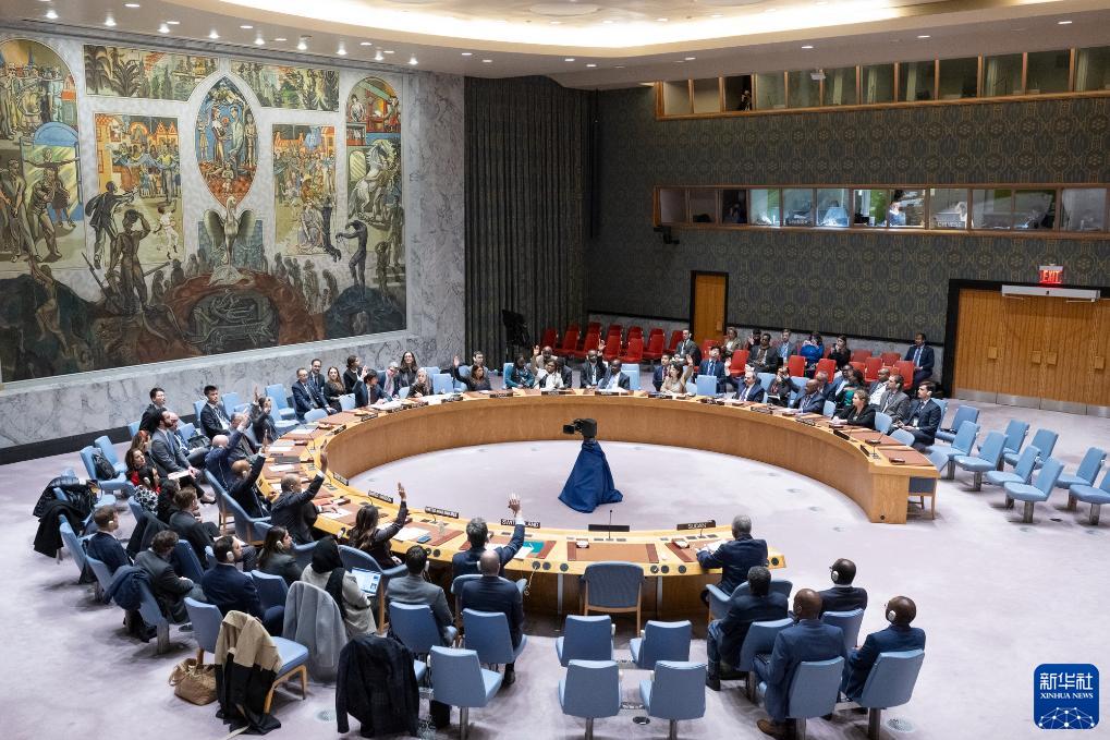 这是12月1日在位于纽约的联合国总部拍摄的联合国安理会会议现场。新华社发(联合国供图/埃瑟金德尔·德贝贝摄)