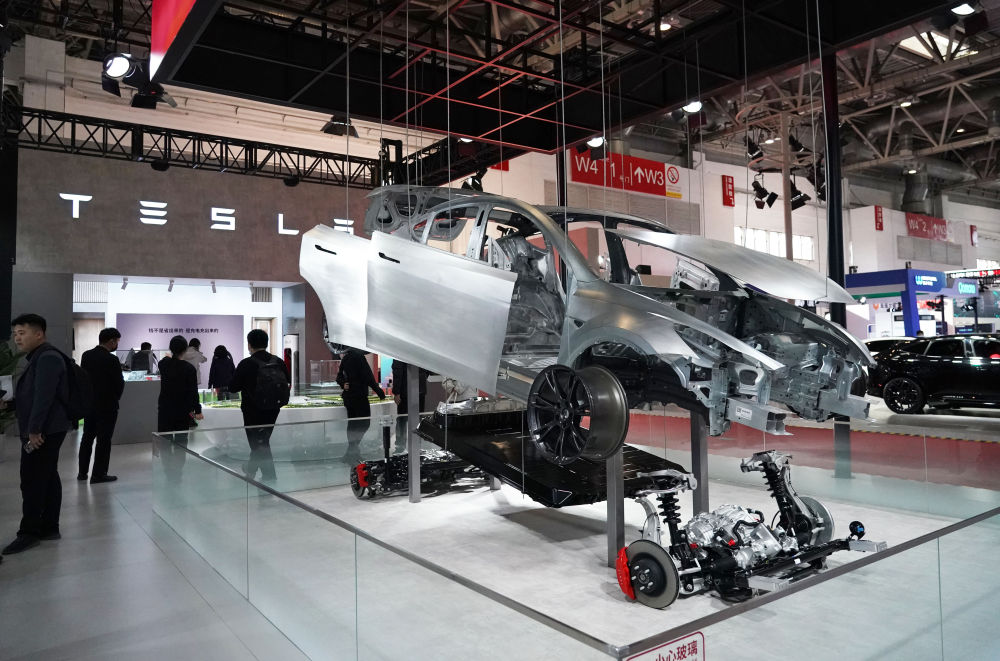 这是在首届中国国际供应链促进博览会现场拍摄的特斯拉展位(2023年11月30日摄)。新华社记者 任超 摄