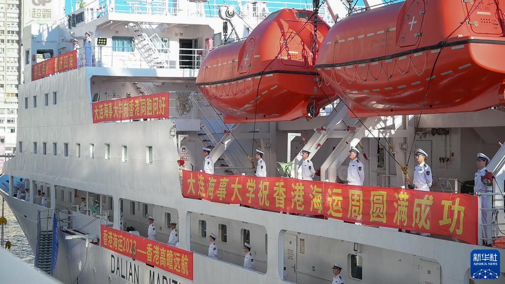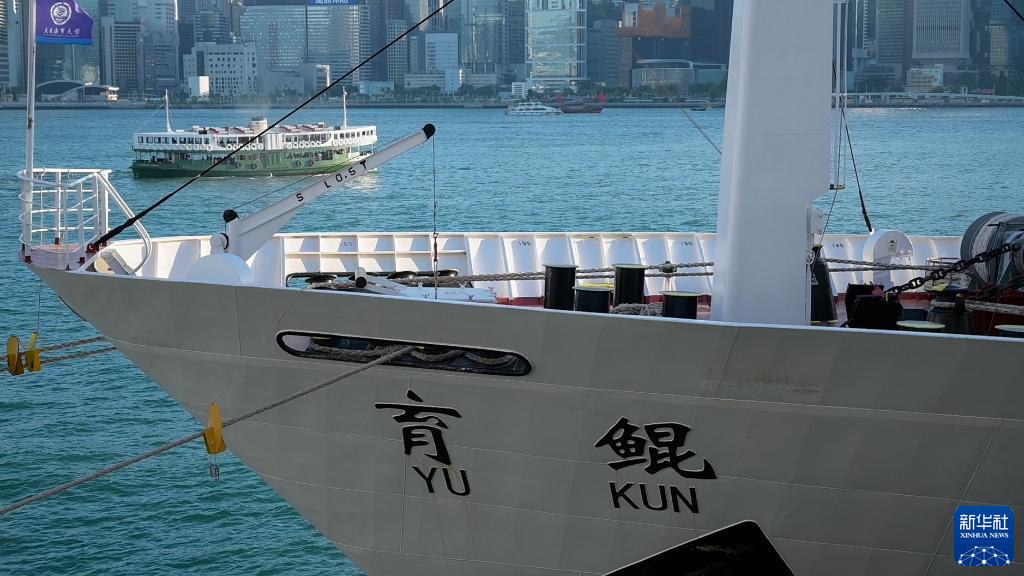 大连海事大学专用远洋教学实习船“育鲲”轮应邀访问香港(11月24日摄)。新华社记者 谭佳铭 摄