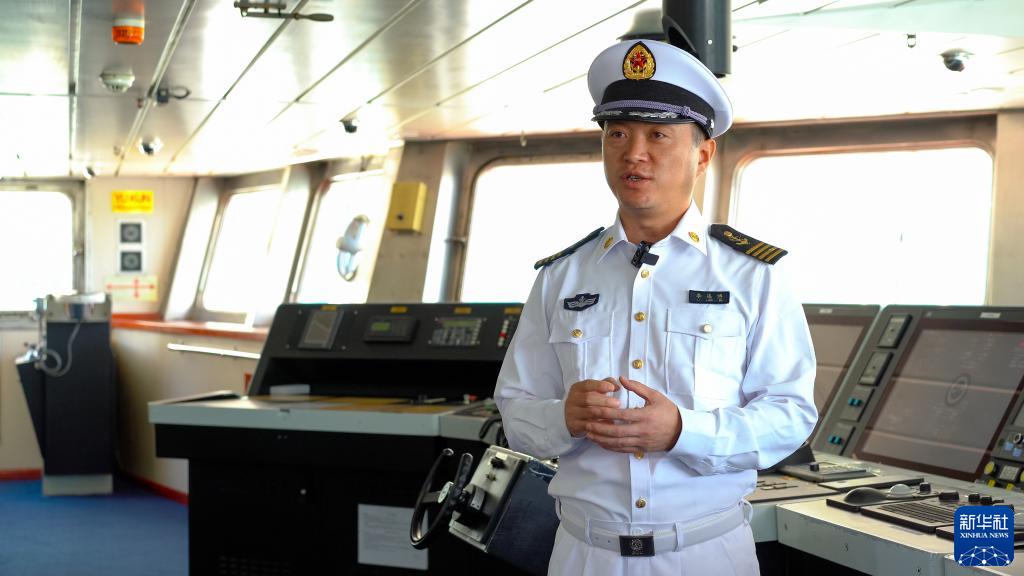 11月24日,“育鲲”轮船长李连博接受采访。新华社记者 龙镜伊 摄