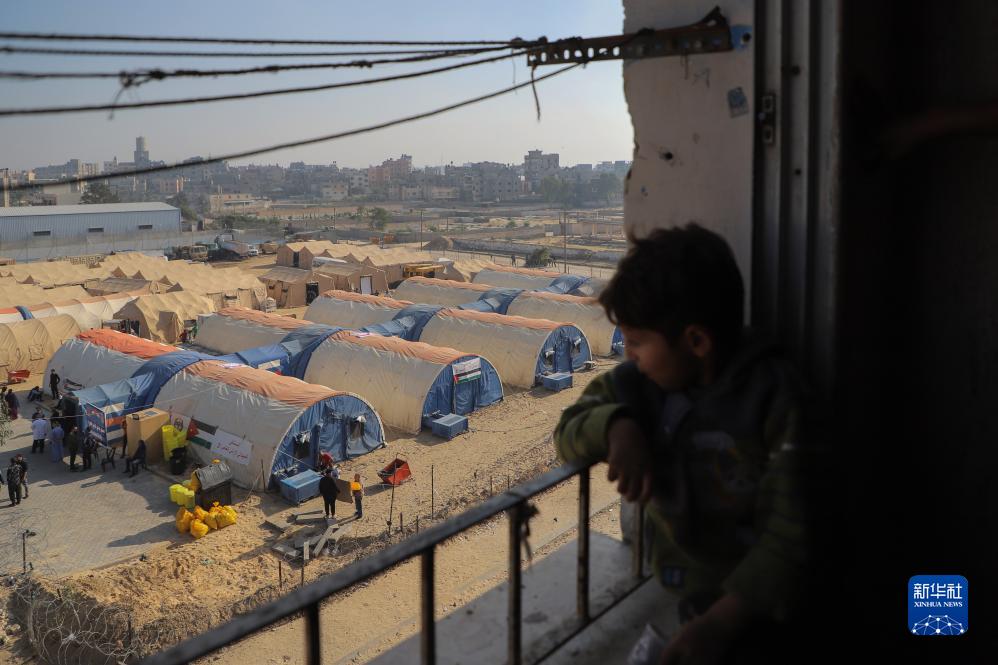 这是12月2日在加沙地带南部城市汗尤尼斯拍摄的一家临时医院外景。
