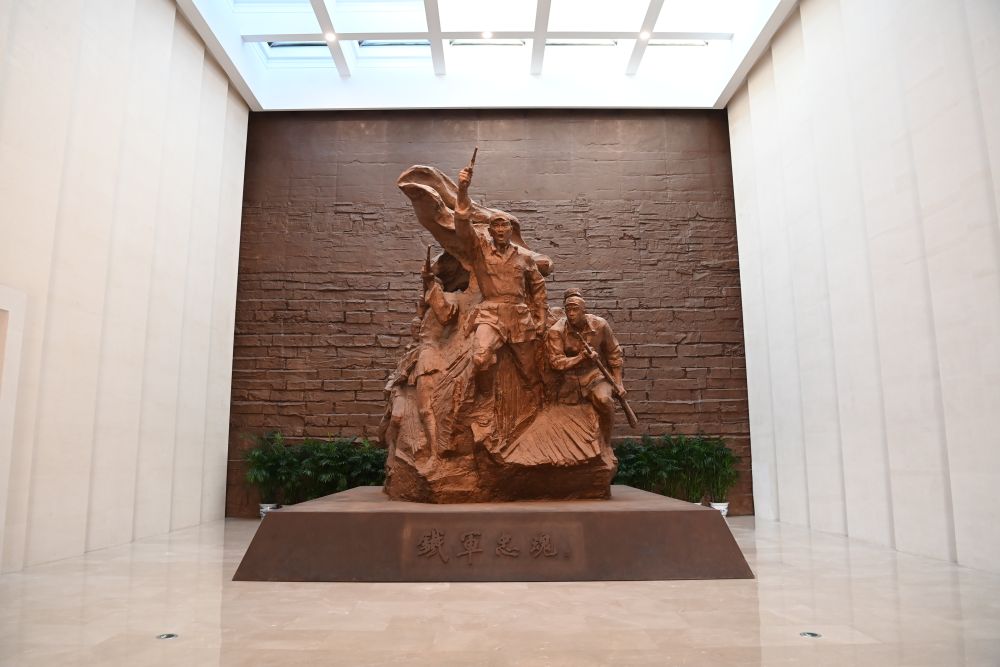 ↑盐城新四军纪念馆内陈列的雕像(2023年11月24日摄)。