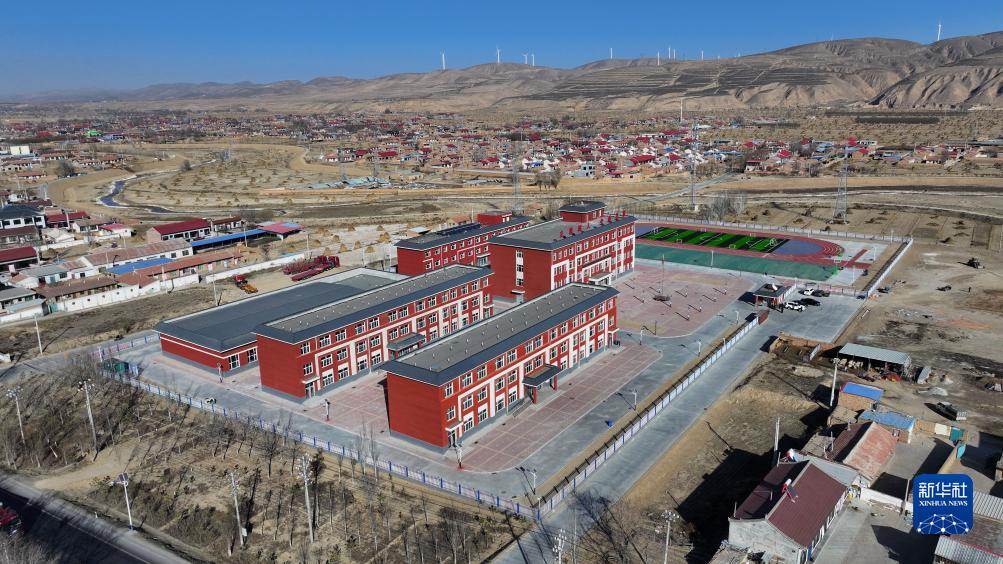 宁夏固原市原州区三营镇第四小学全景(11月30日摄,无人机照片)。