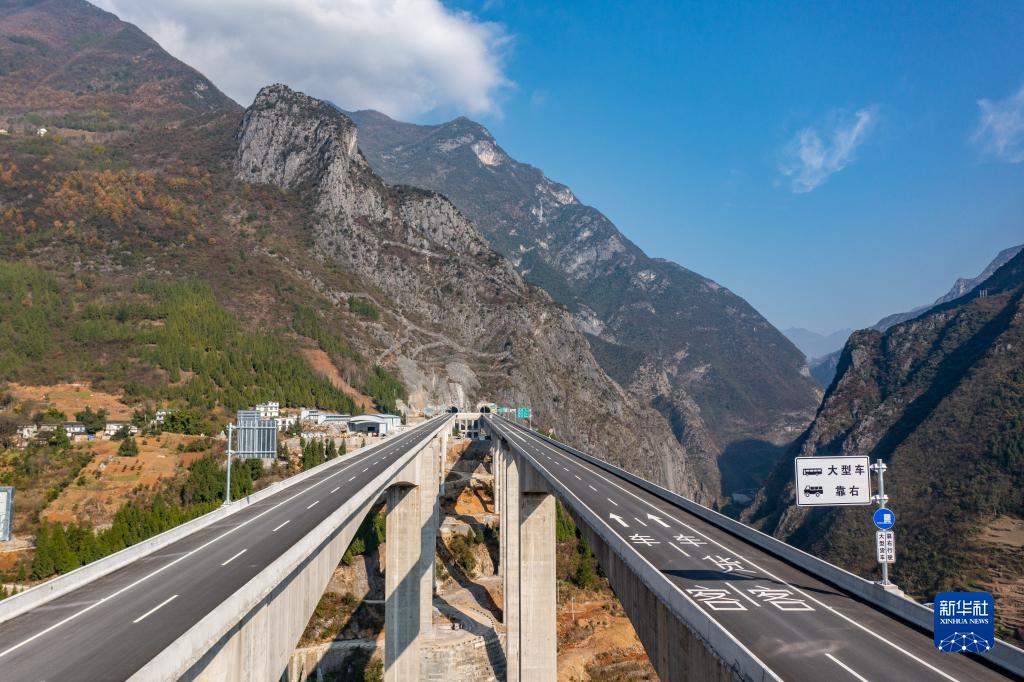 这是12月4日在重庆市巫溪县拍摄的巫镇高速巫溪互通(无人机照片)。新华社记者 黄伟 摄