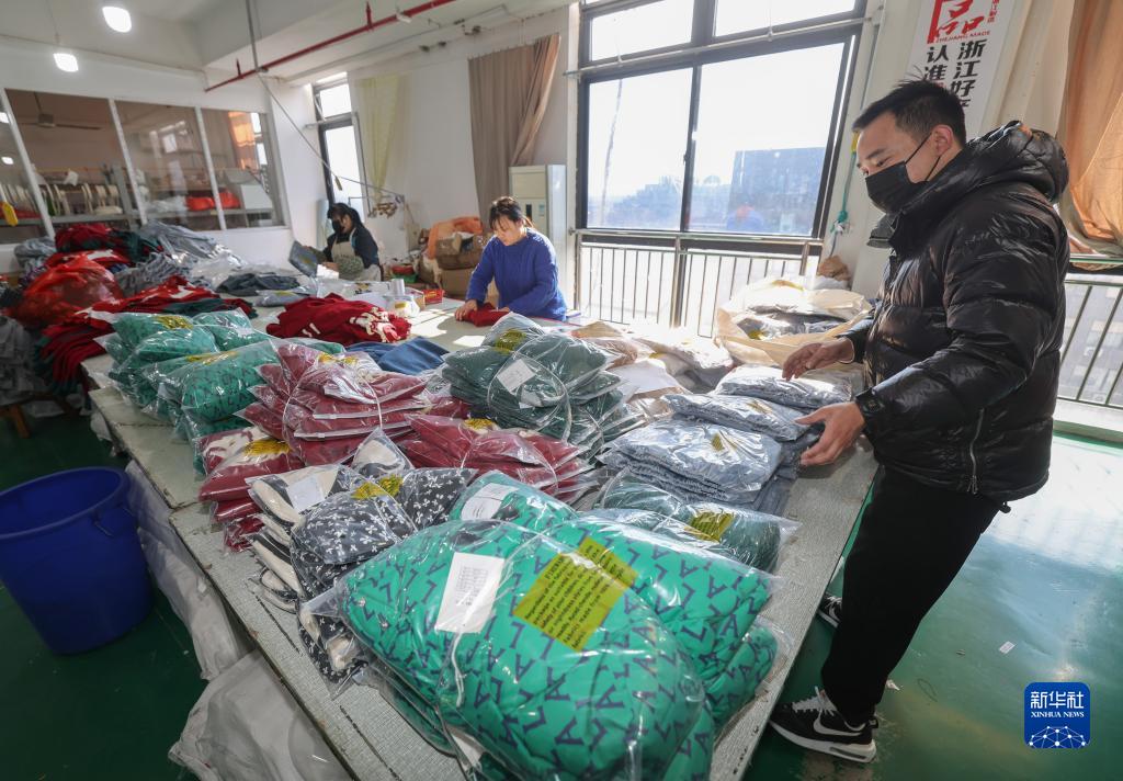 12月5日,这是位于织里镇的湖州南童魔服饰有限公司的仓库内,工作人员正在打包发货。该企业童装出口欧美、日韩等国家和地区,日均出口童装3000件,其名下品牌“蒂萨纳”在韩国首尔开设6家门店。