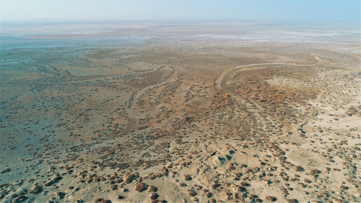 克亚克库都克烽燧遗址地处荒漠(无人机照片)。(胡兴军 摄)