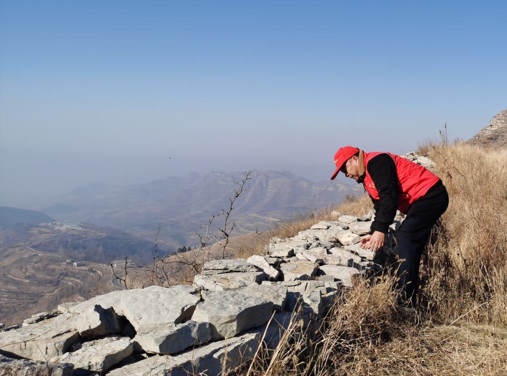 头戴红帽子、身着红马甲,拿着手机拍摄记录……在博山区齐长城遗址沿线,有不少像孙启彬一样的巡护员。近年来,博山区按照“每公里一个人”的标准,设置了71个公益性岗位,用于齐长城巡护工作,确保每1公里至少有1名巡护员负责巡查。