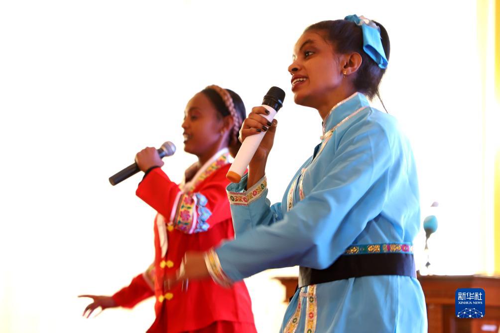 12月4日,在埃塞俄比亚首都亚的斯亚贝巴,亚的斯亚贝巴大学孔子学院学生表演节目。新华社发(迈克尔·特韦尔德摄)