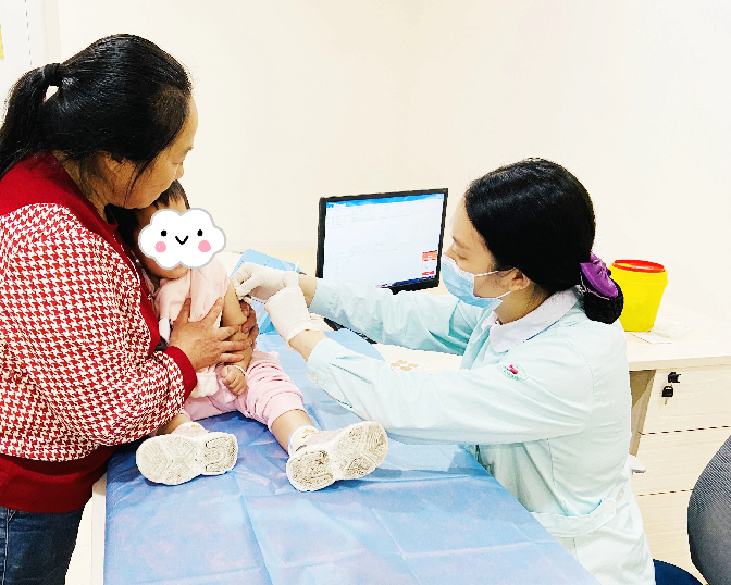 图为重庆市荣昌区妇幼保健院医护人员为儿童接种疫苗。(荣昌区妇幼保健院供图)
