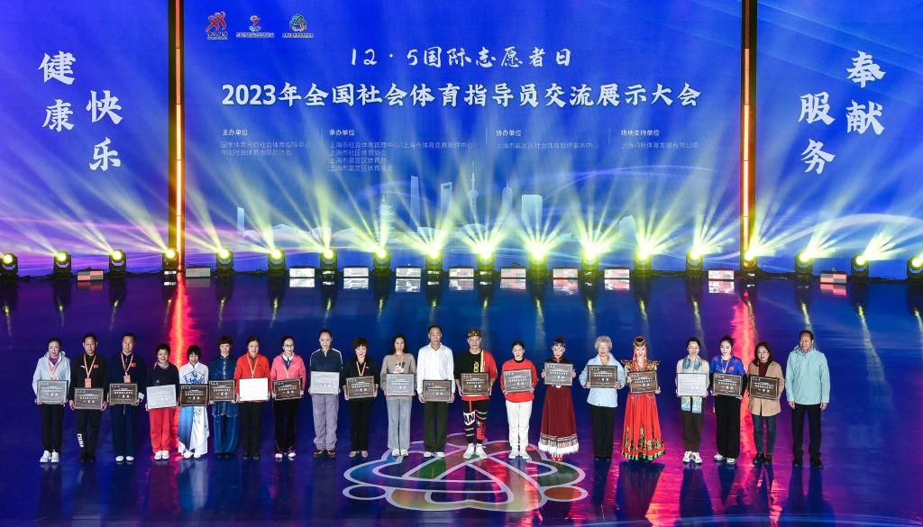 新华网上海12月6日电 5日在上海嘉定体育馆,来自全国的优秀社会体育指导员共舞一曲,把“12·5国际志愿者日”2023年全国社会体育指导员交流展示大会推向高潮。