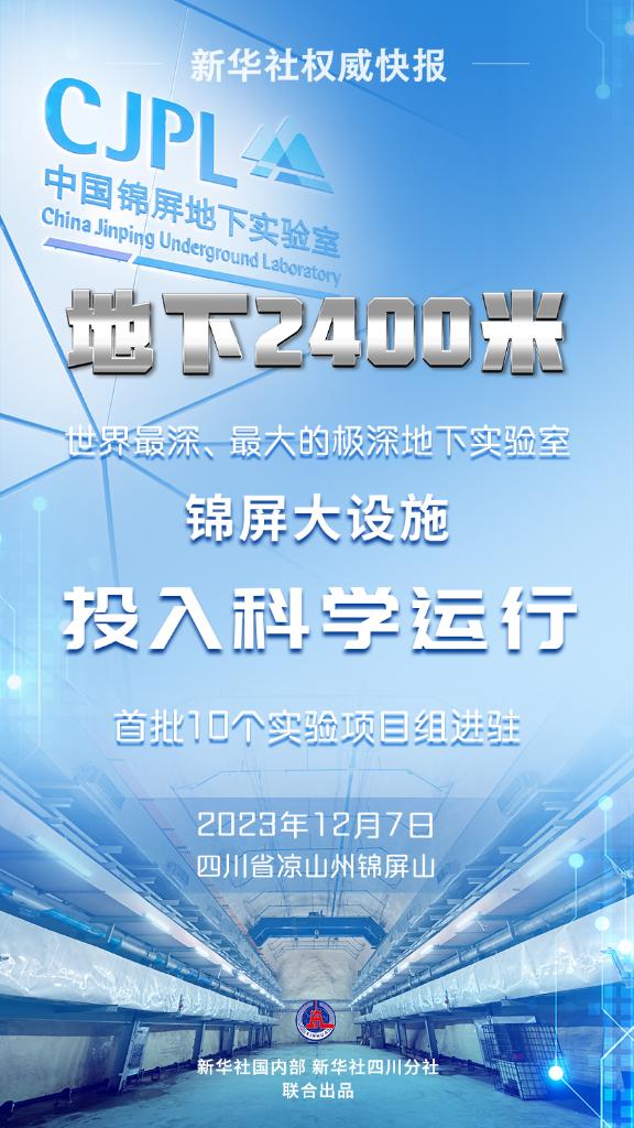 12月7日,中国锦屏地下实验室二期极深地下极低辐射本底前沿物理实验设施(简称“锦屏大设施”)土建公用工程完工,具备实验条件。这标志着世界最深、最大的极深地下实验室正式投入科学运行。