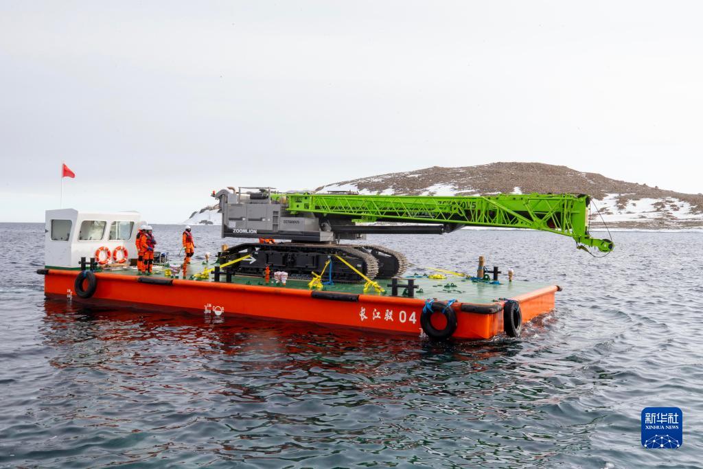 12月7日,中国第40次南极考察队开展卸货作业。新华社记者 周圆 摄