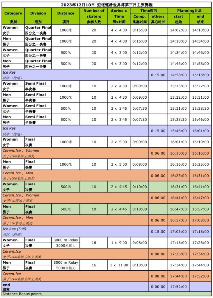 男、女500米、1000米、1500米