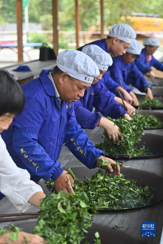 在梧州市苍梧县六堡镇黑石山茶厂,工人在加工茶叶(9月6日摄)。