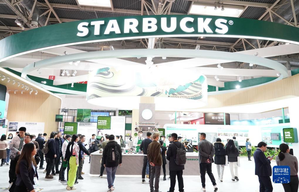 这是在首届中国国际供应链促进博览会健康生活链展区拍摄的星巴克展位(2023年11月28日摄)。新华社记者 任超 摄