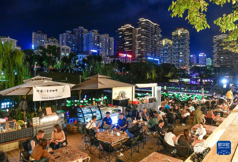2023年9月14日,游客和市民在贵州省黔西南布依族苗族自治州兴义市马岭河夜间消费聚集区休闲。新华社记者 杨文斌 摄