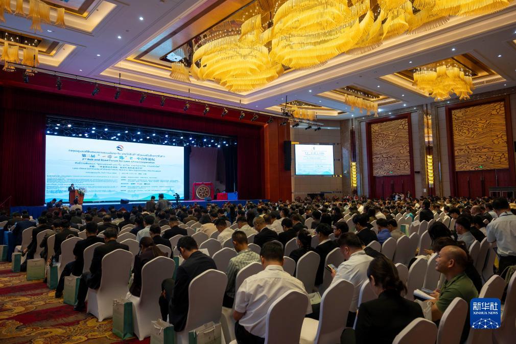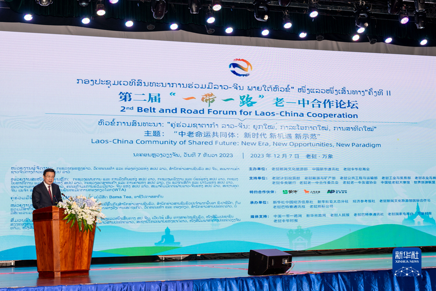 这是12月7日在老挝首都万象拍摄的第二届“一带一路”老—中合作论坛现场。新华社记者 朱炜 摄