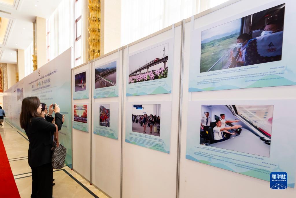 12月7日,在老挝首都万象,来宾参观“中老命运共同体建设成果”图片展。新华社记者 朱炜 摄