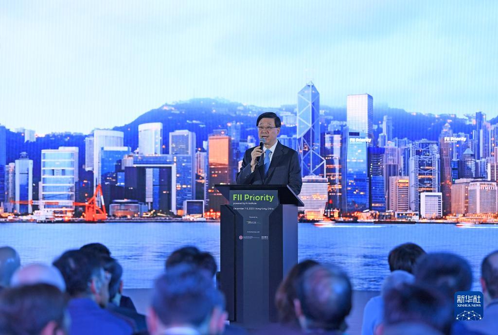 12月7日,香港特区行政长官李家超在峰会上致辞。新华社记者 陈铎 摄