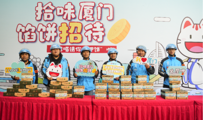 活动现场,一份份“小招喵x鼓浪屿馅饼”联名馅饼礼盒被温柔地交予到市民手中,化成了一张张笑容可掬的脸庞。