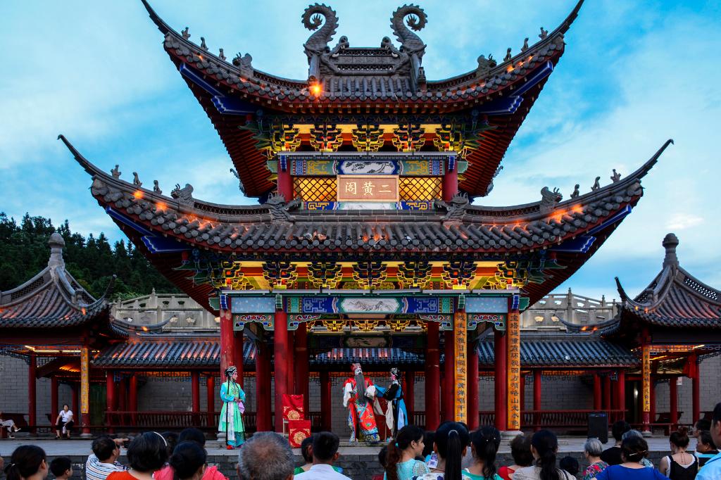 在宜黄县卓望山景区二黄阁,宜黄戏正在上演。(图片均由宜黄县文化馆提供)