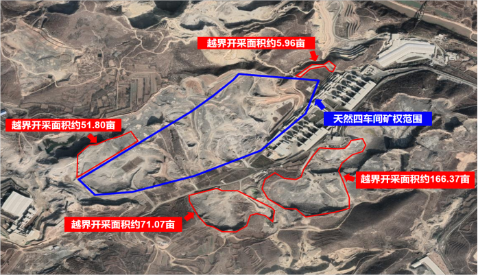 ——卫辉市天然资源有限公司在未办理占用林地审批手续的情况下,在采矿证许可范围外长期越界开采矿石。其中,该公司四车间2018年以来越界开采共计破坏自然山体和林地面积约295.2亩,包括林地35.3亩。