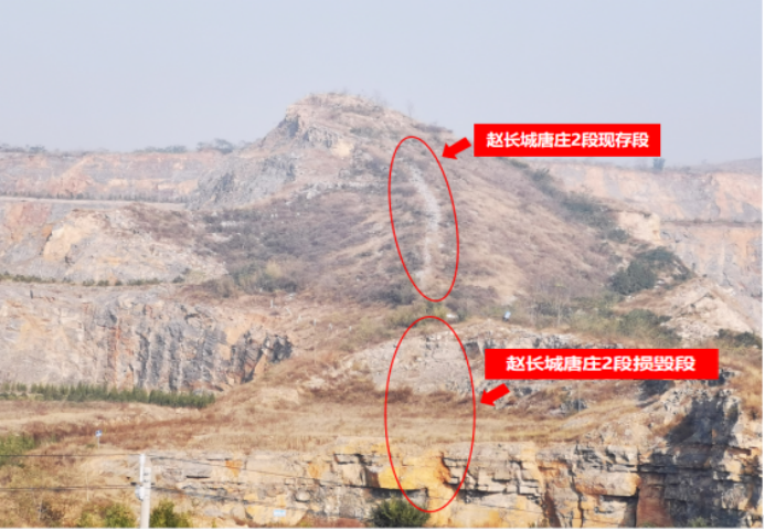 然而,2018年,卫辉矿山主管部门为卫辉市天然资源有限公司四车间办理采矿许可证时,未按规定征求文物行政部门意见,将赵长城遗址唐庄2段长达651米的遗址划入采矿范围。该公司在此后的采矿过程中,未能保证文物保护单位的安全,对450余米赵长城遗址造成了破坏。