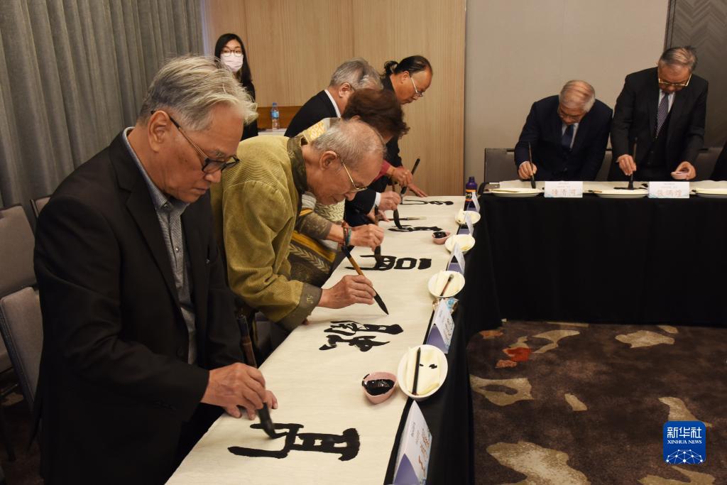 12月8日,由两岸有关机构共同主办的2023海峡两岸年度汉字评选结果在台北揭晓,“融”字以最高票当选。这是台湾中华书学会的多名书法家和参会嘉宾写下不同字体的“融”字。新华社记者 刘斐 摄