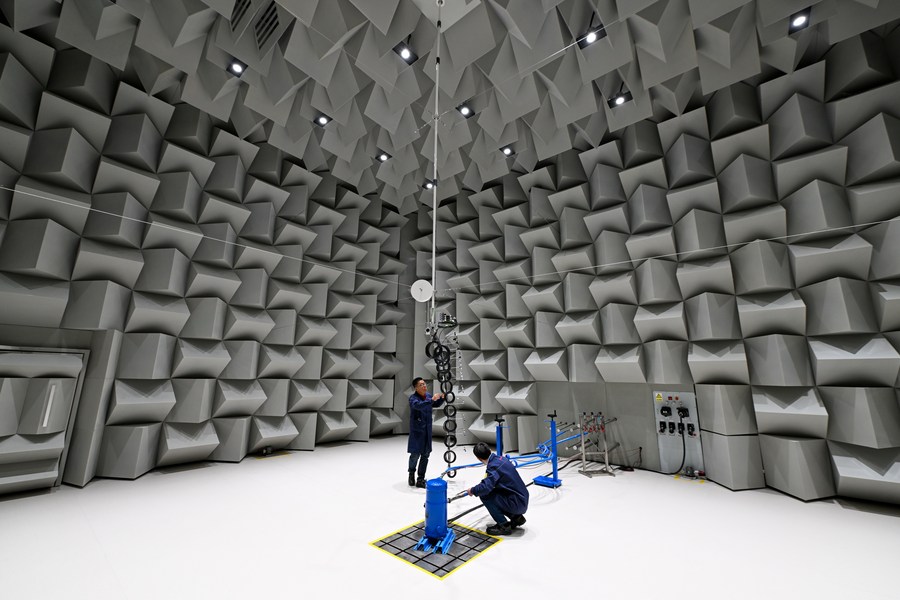 在丹佛斯全球制冷研发测试中心内拍摄的压缩机自动化声振性能检测测试室(5月10日摄)。新华社记者 孙凡越 摄