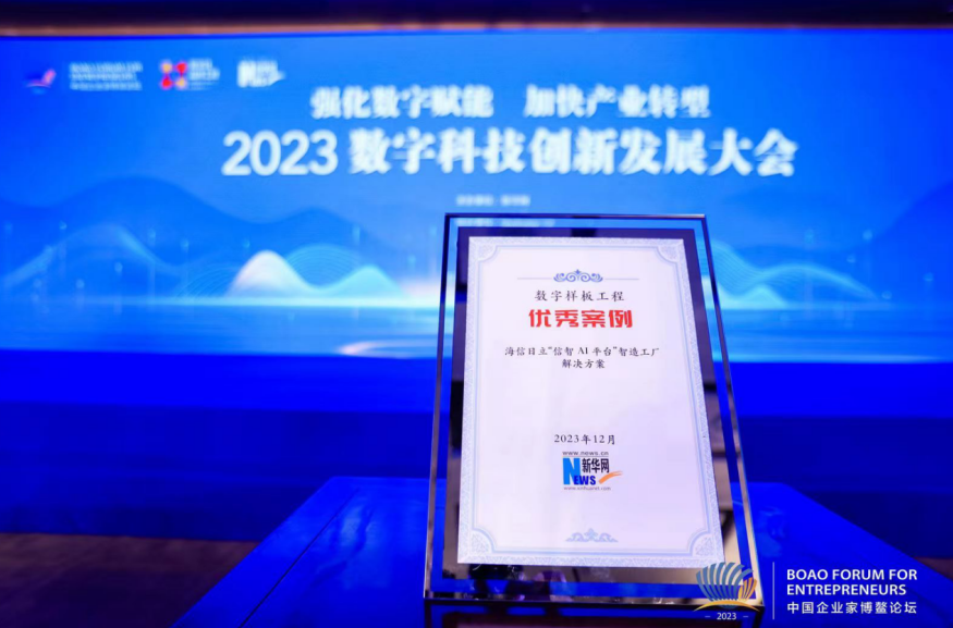 12月4日,由新华网主办的2023数字科技创新发展大会在海南博鳌召开。本次大会是2023中国企业家博鳌论坛的平行论坛之一。会上,备受瞩目的《数字经济和实体经济融合发展报告(2023)——数字化赋能新型工业化创新实践》优秀案例名单公布。青岛海信日立空调系统有限公司(以下简称“海信日立”)“信智AI平台”智造工厂解决方案成功入选。