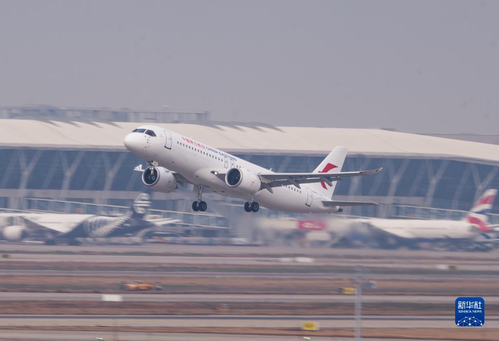12月9日,东航第三架C919从上海浦东国际机场起飞。