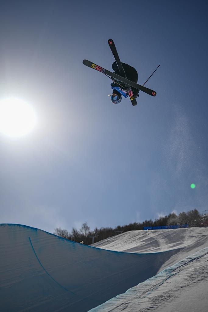 谷爱凌在9日的自由式滑雪U型场地技巧比赛中。新华社发(张林源摄)