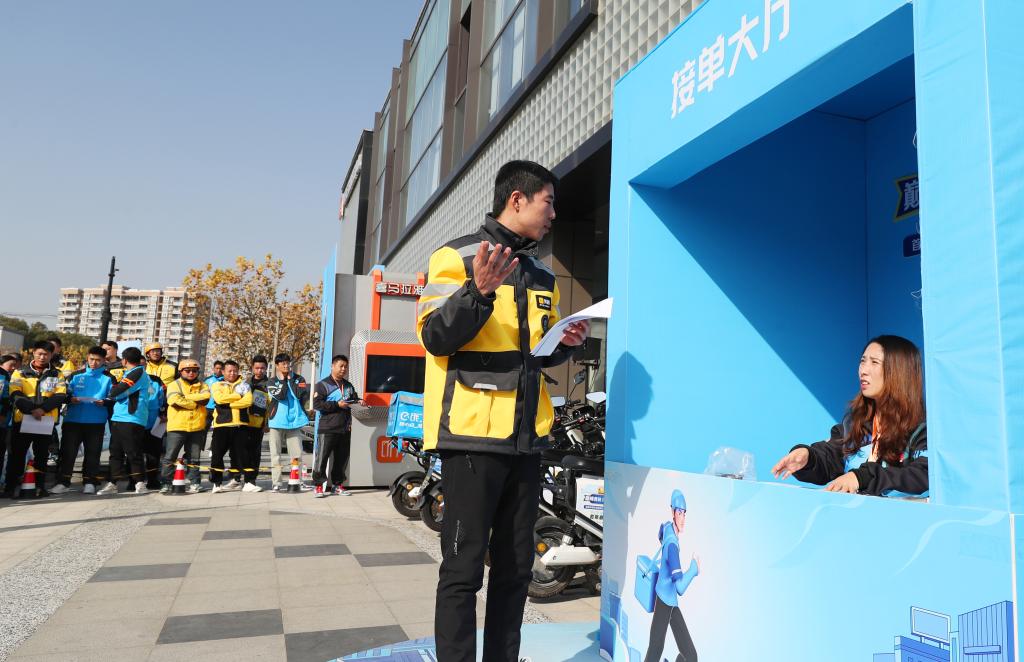 据介绍,本次比赛分为理论考试和技能实操两个环节,其中实操环节涵盖“配送前准备、接单大厅、异常处置、安全配送、准时送达”五个项目,还原了骑手接单、派单的全过程,全面考察选手的时空规划能力和综合处置能力。