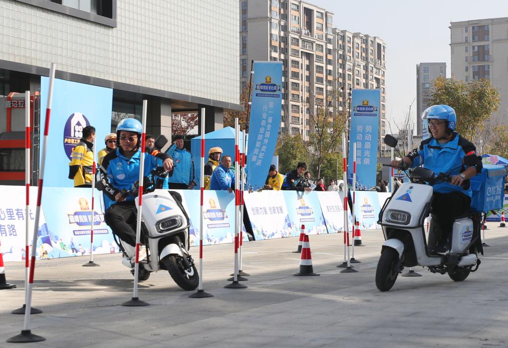 新华社上海12月9日电(记者周蕊)绕桩骑行、过窄路,尽力确保滴水不洒;商户地址错误、用户联系不上等突发状况稳妥处理……近日,来自全国6家平台企业的40名外卖配送员齐聚上海,在由中国财贸轻纺烟草工会、上海市总工会主办的2023年首届全国外卖配送行业职业技能竞赛中“巅峰竞技”。
