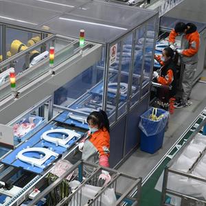 位于福建泉州的九牧集团是国内卫浴龙头企业,在其5G智能工厂生产车间,各种物料智能传递,电子显示屏实时显示车间运行情况,机器人与产业工人在流水线上各司其职、精准作业。