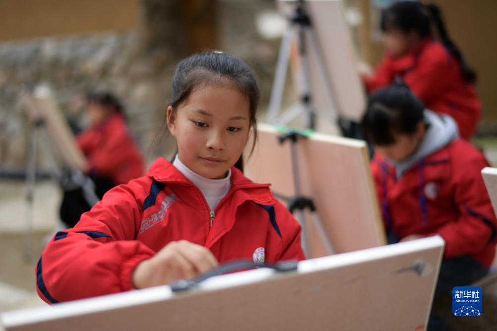 12月9日,学生在黄平县一碗水乡印地坝村写生。