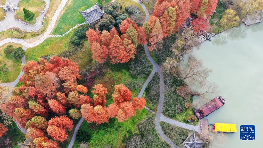 12月9日拍摄的江苏扬州蜀冈-瘦西湖风景区的落羽杉(无人机照片)。