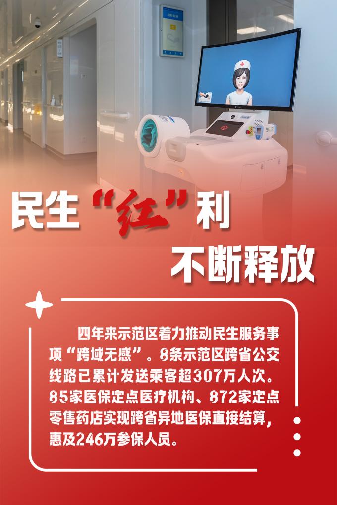 瞄准区域内居民更美好的生活,示范区着力推动民生服务事项“跨域无感”。四年来8条示范区跨省公交线路已累计发送乘客超307万人次。85家医保定点医疗机构、872家定点零售药店实现跨省异地医保直接结算,惠及246万参保人员。