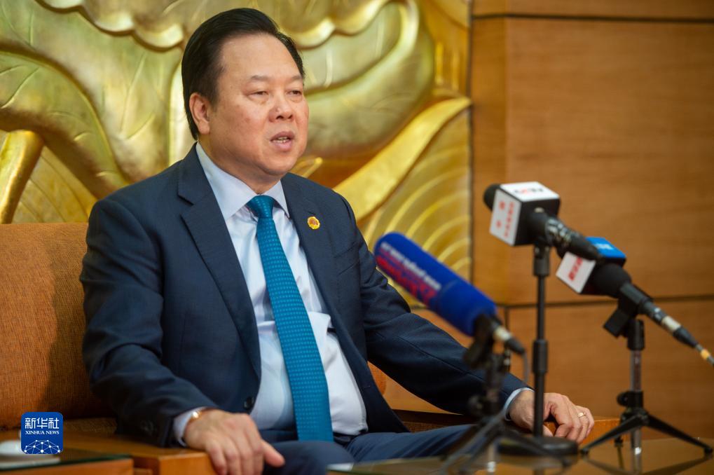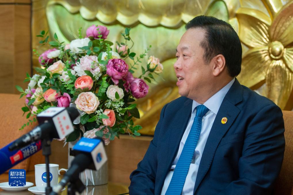 12月8日,越共中央委员、越南国资委主任、越中友协主席阮黄英在越南河内接受新华社等中国媒体联合采访。新华社记者 林昊 摄
