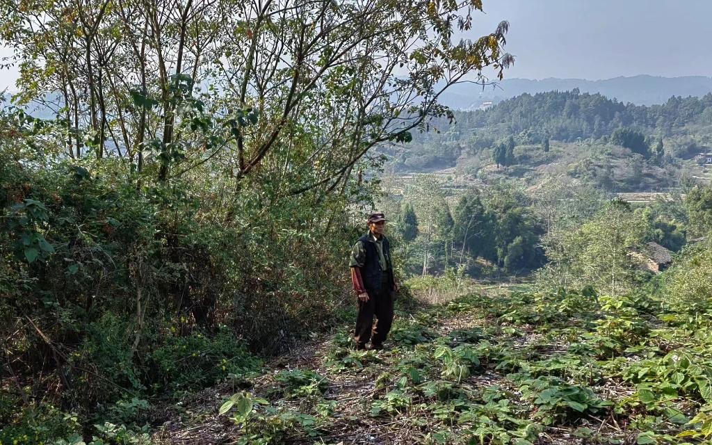 赵某某在达州市达川区百节镇的林区巡山。(达川区人民检察院供图)