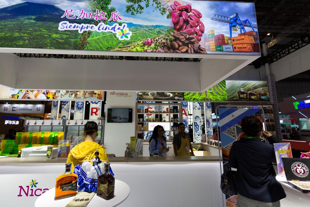 图为11月6日在第六届进博会国家展拍摄的尼加拉瓜展台。新华社记者 高巍 摄