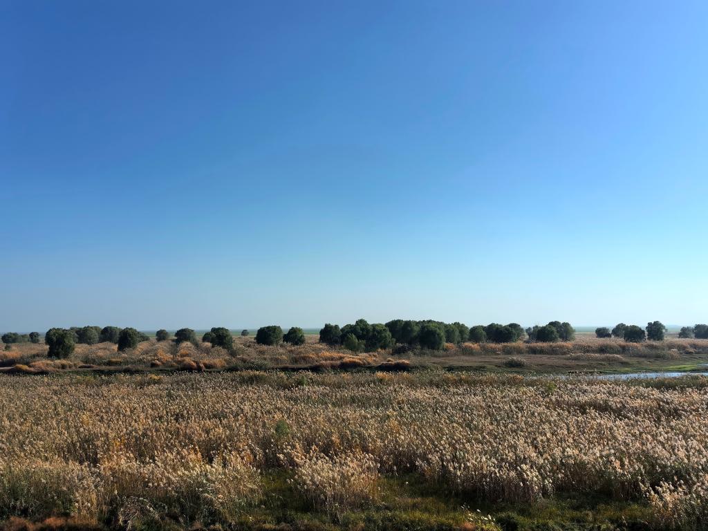 受气温偏高和相对少雨影响,湖南省华容县附近的洞庭湖洲滩大面积裸露。新华社记者周楠 摄