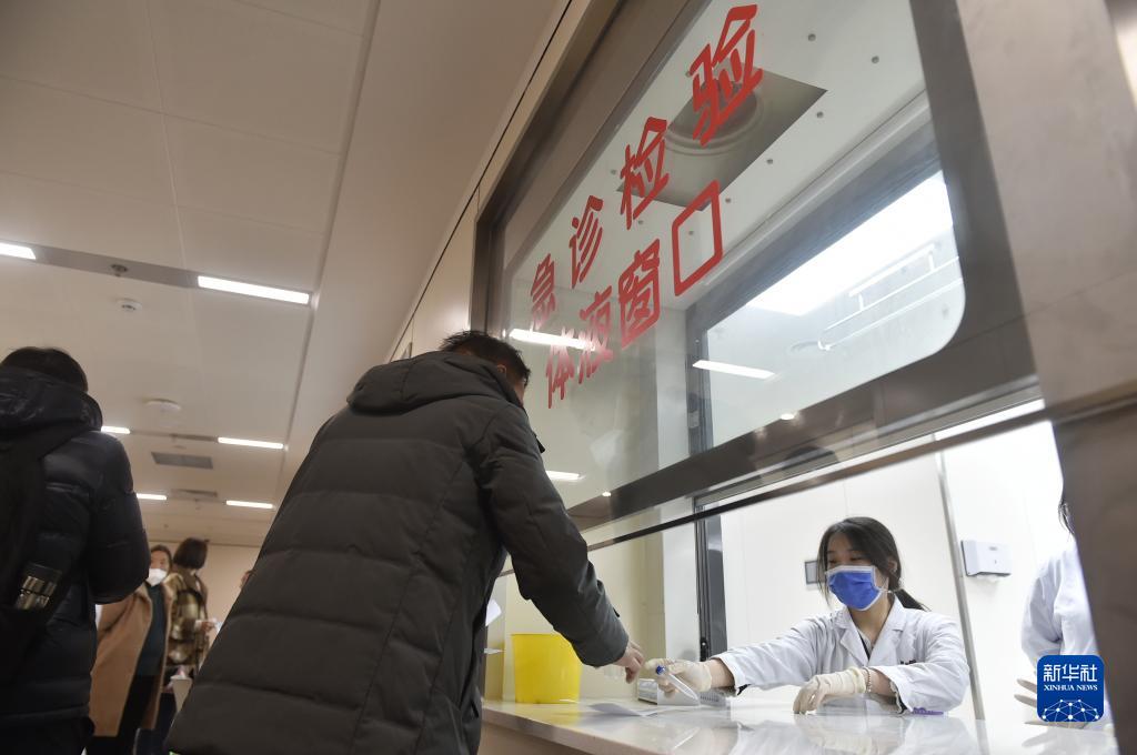 这是12月10日拍摄的河南省人民医院北院区急诊检验窗口。