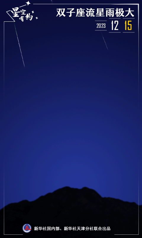 新华社天津12月12日电(记者周润健)今年冬天最好看的流星雨即将闪亮登场。天文科普专家介绍,双子座流星雨将于12月15日凌晨迎来极大,无月光影响,喜欢流星雨的公众可于14日晚至15日晨进行观测。