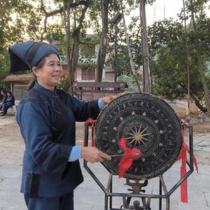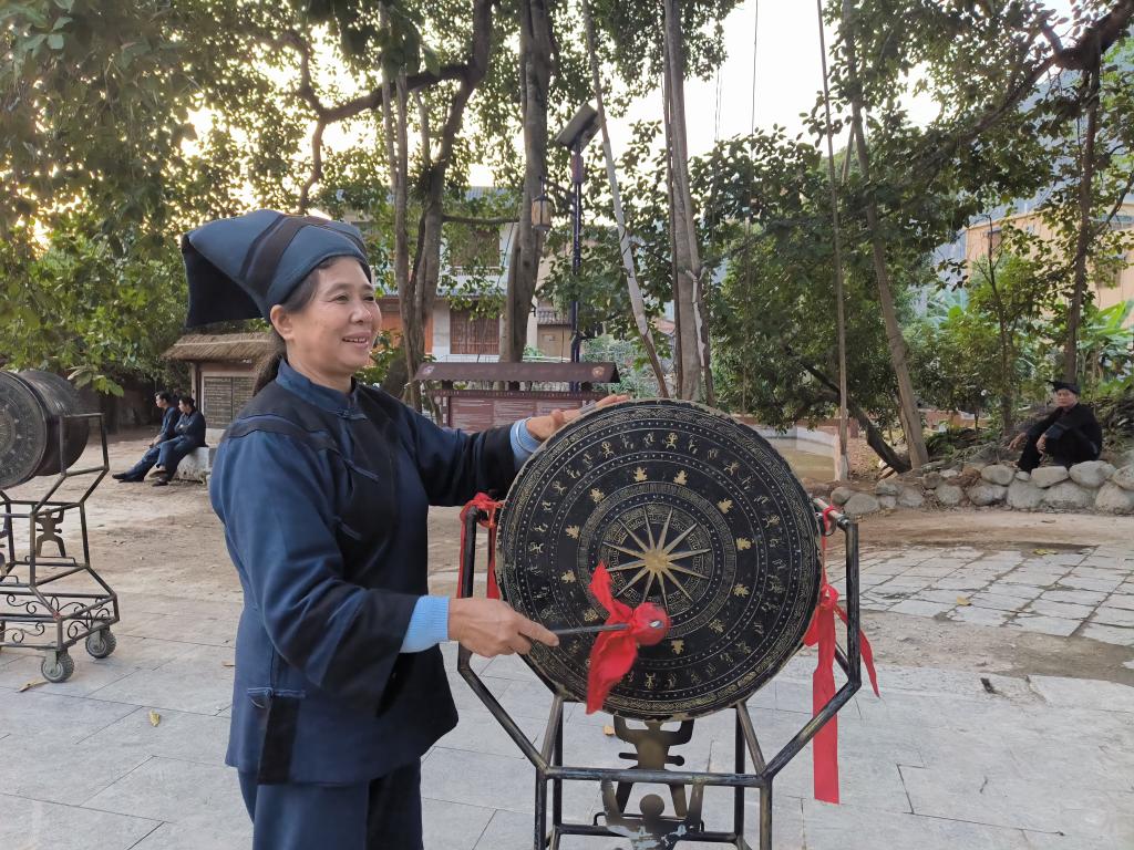 “他敲战鼓,我敲铜鼓,有游船过来我们就表演,节假日一天最多能有30多场演出。”吕细梅告诉记者,村里的旅游发展起来了,表演节目既能增加一份收入,还能把老一辈的铜鼓文化传承下去,“心里很开心”。