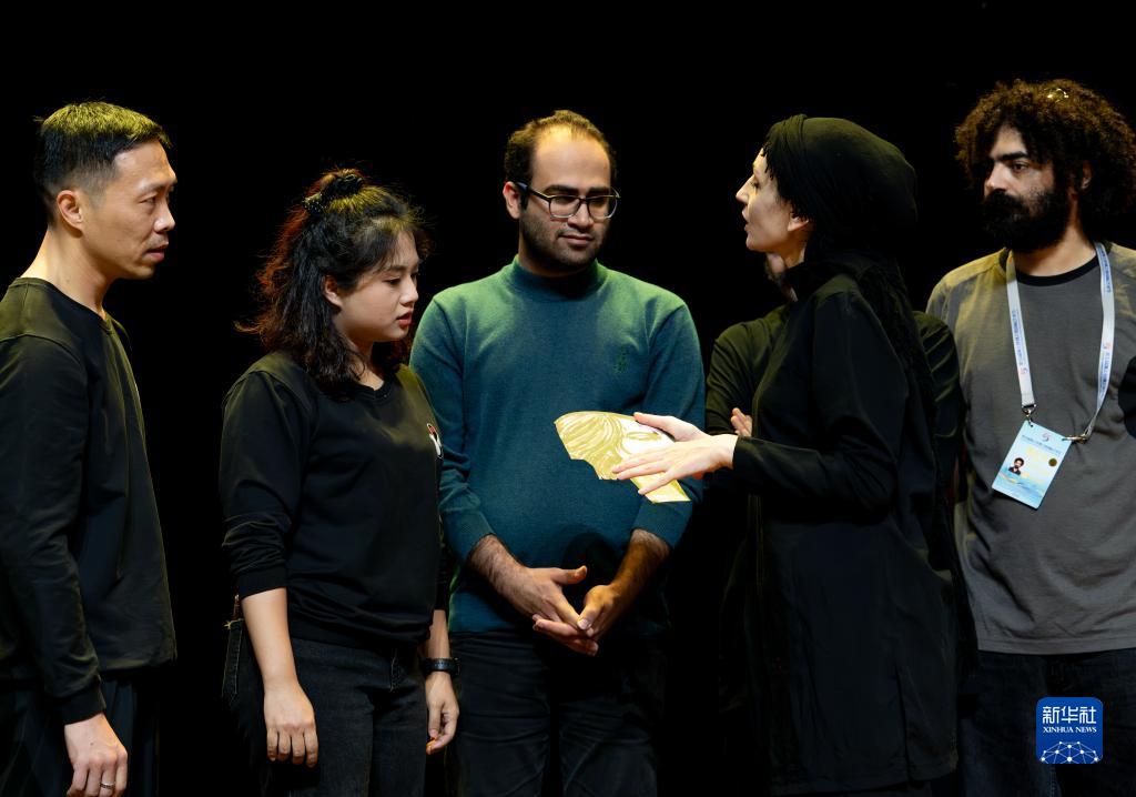 在福建泉州晋江市掌中木偶艺术保护传承中心,法希玛·巴罗奇与晋江市掌中木偶艺术保护传承中心演出队队长、市级非遗传承人陈代宫一见如故,两名中外艺术家台上台下交流互鉴,相互学习表演技艺。