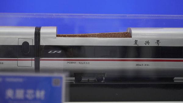 图说:芳纶纸制成的蜂窝结构芯材填充进我国复兴号高铁列车